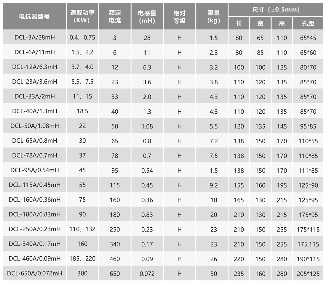 DCL系列直流电抗器用于整流回路之中,消除整流后的纹波脉动成份,这种纹波往往是有害的,需要由直流电抗器加以抑制,抑制中频电源分量对工频电网的影响,并限制短路电流和滤波作用。直流电抗器在电路中主要用于改善电网质量,提高功率因素之用。